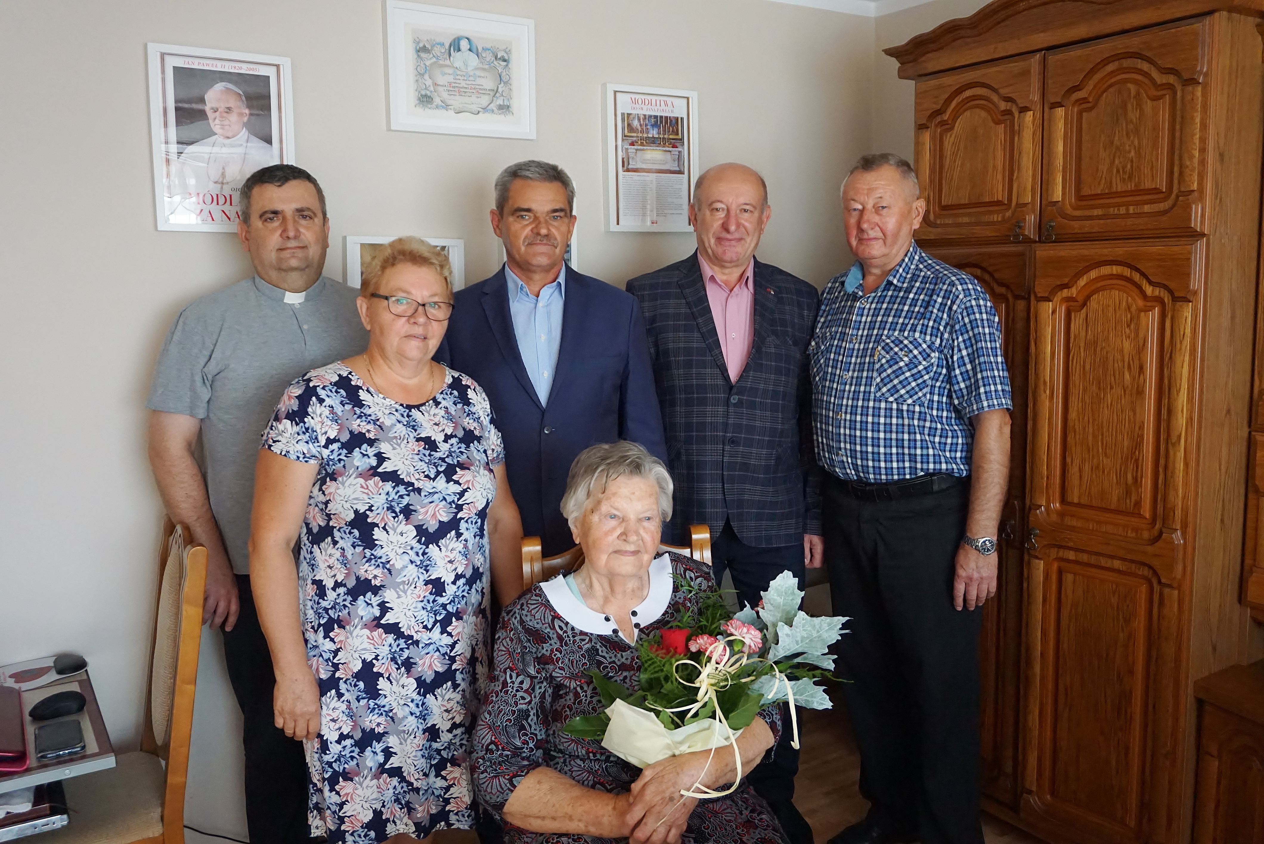 Pani Kazimiera Staniszewska z Grębocic w dniu dzisiejszym obchodzi swoje 90 urodziny. Z tej okazji nie mogło zabraknąć życzeń urodzinowych. Wizytę solenizantce złożyli: Wójt Gminy Roman Jabłoński, sołtys Grębocic Marek Pieniążek oraz proboszcz Wojciech Ratajewski. Warto wspomnieć, że nasza solenizantka, Pani Kazimiera, jest mamą 3 dzieci, babcią 8 wnuków, prababcią 16 prawnuków. A grono prawnuków w ciągu najbliższych dni powiększy się o jeden, na co z niecierpliwością i wielką radością czeka Pani Kazimiera.